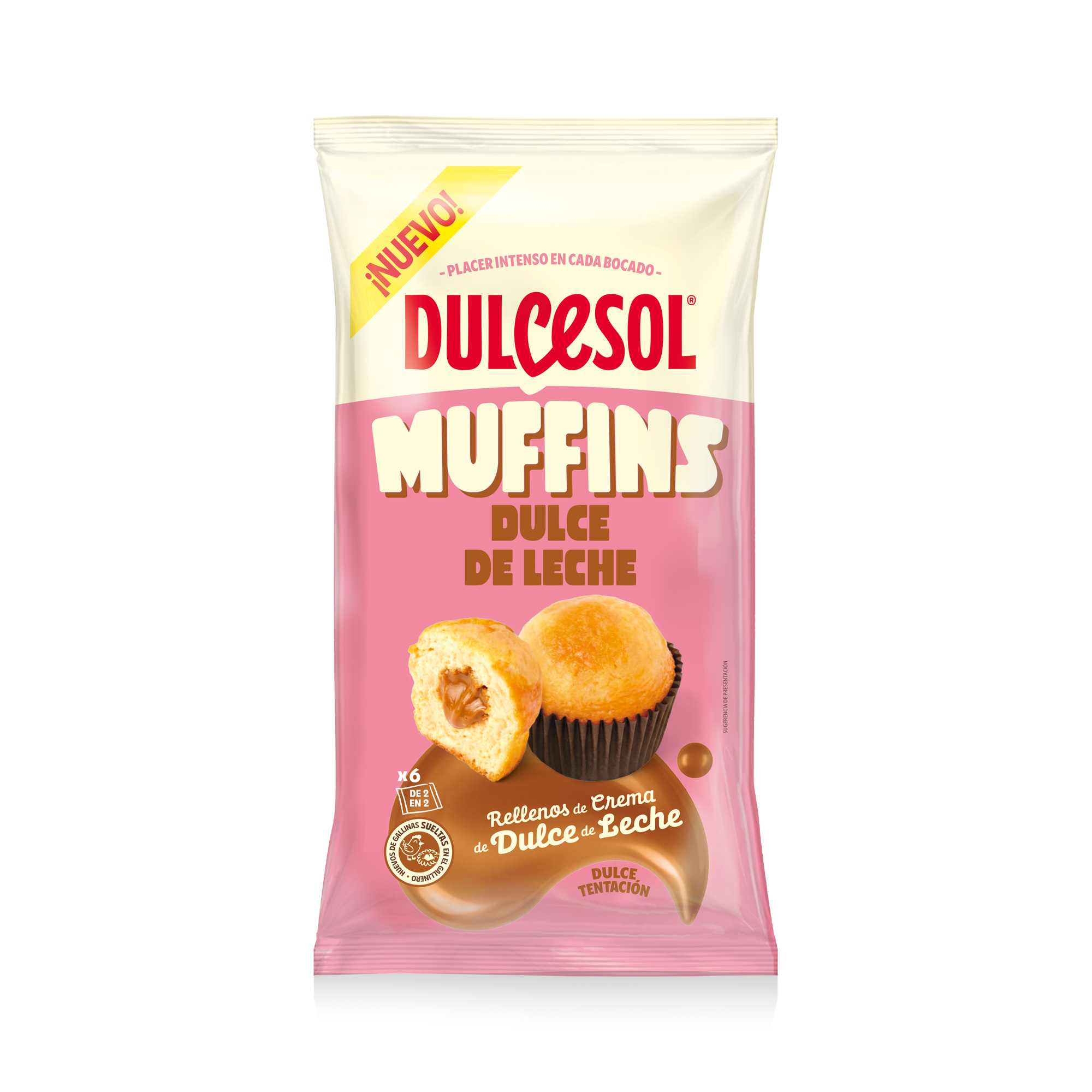 Harina de TRIGO, aceite de girasol, azúcar, HUEVO (13%), relleno sabor dulce de leche (13%) [jarabe de glucosa y fructosa, azúcar, agua, LECHE en polvo, LECHE desnatada en polvo y conservador: E-202], humectantes: E-422 y E-420, clara de HUEVO (5%), agua, emulgente: E-471, gasificantes: E-450 y E-500, LECHE desnatada en polvo, espesante: goma xantana, sal, estabilizante: goma guar, conservador: E-202, aromas y colorante: E-150d. Huevos de gallinas sueltas en el gallinero.