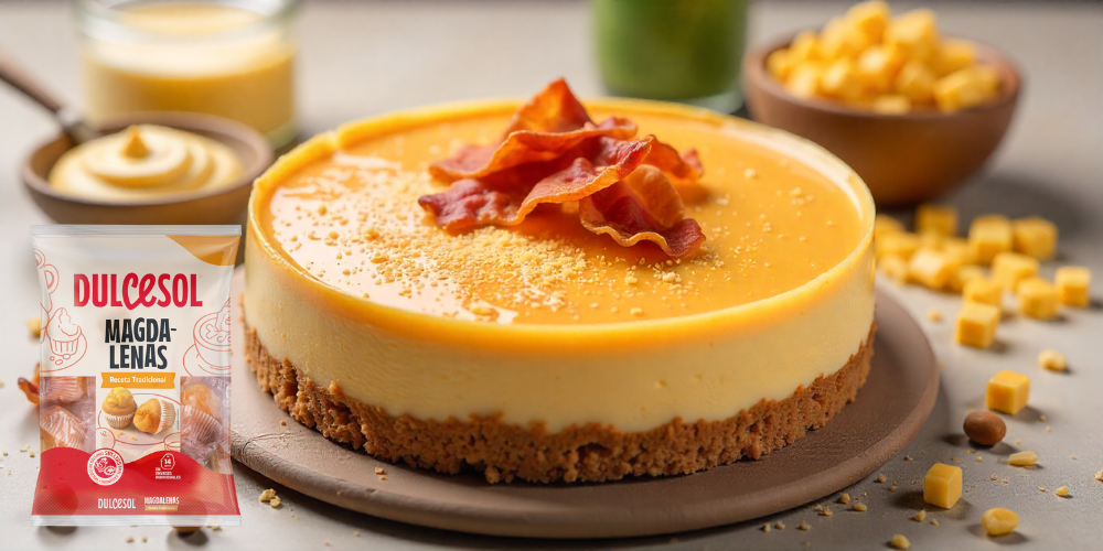 Porque la felicidad está en los pequeños momentos dulces, hoy te traemos una receta que combina lo mejor de varios mundos: una cheesecake cremosa, con el sabor esponjoso de las magdalenas Dulcesol, un toque irresistible de dulce de leche y el contraste sorprendente del bacon crujiente.