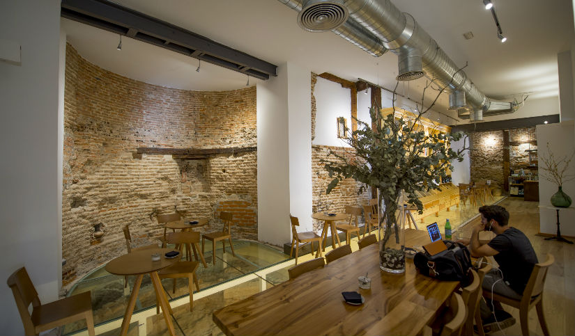 El espacio que ocupa esta fábrica de sueños azucarados ofrece además una cafetería que, aunque a lo largo de la historia ha tenido varios usos, ya fue tahona durante el primer tercio del siglo XX. Aquí se pueden degustar, además de sus dulces, cafés de origen elaborados por baristas profesionales, chocolate caliente o infusiones gourmet.