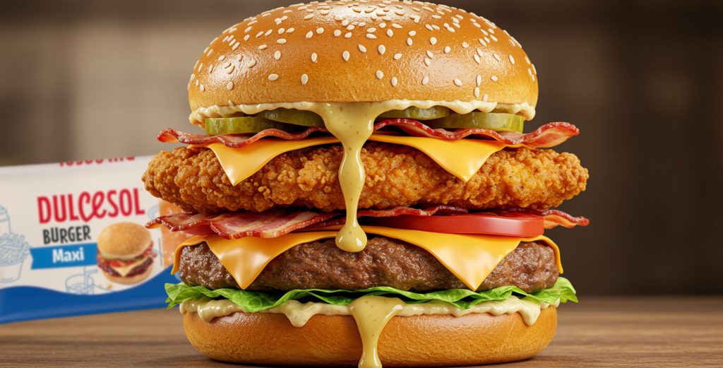 Una burger equilibrada entre lo crujiente, lo jugoso y lo dulce, con una salsa miel-mostaza que envuelve cada bocado y la hace difícil de olvidar.