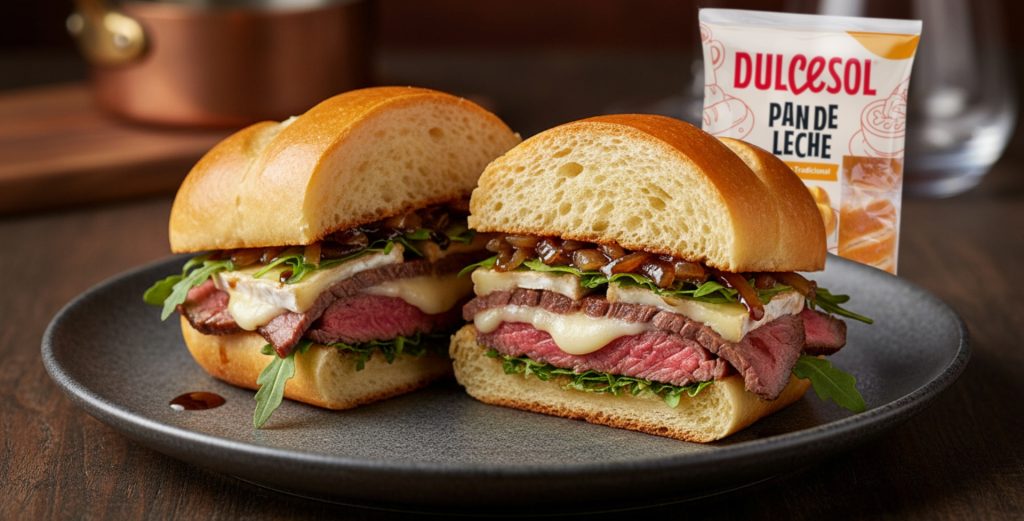 En esta receta, el pan de leche Dulcesol se convierte en la base de un bocado gourmet donde lo dulce y lo salado se equilibran con precisión. Su miga tierna y ligeramente dulce potencia los matices del solomillo y contrasta con la intensidad del queso brie y la suavidad de la cebolla caramelizada.