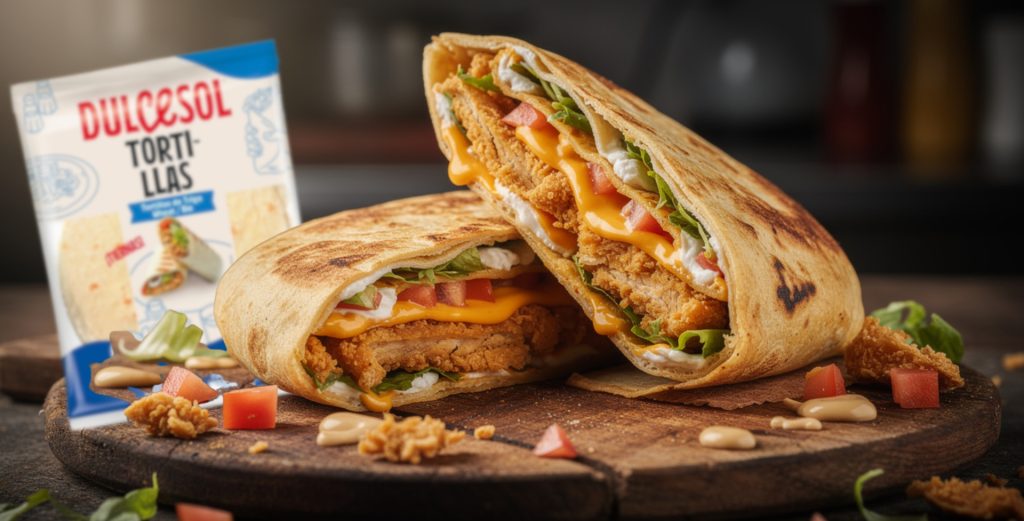 En esta receta, las tortillas de trigo Dulcesol se convierten en el elemento clave para crear un wrap crujiente por fuera y jugoso por dentro.